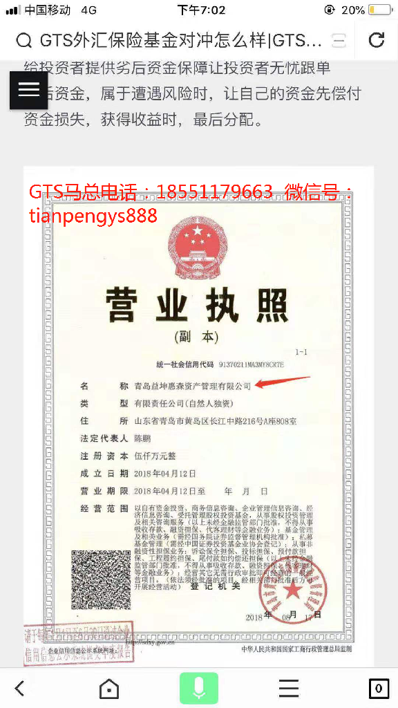 GTS外汇基金担保交易马总电话:18551179663 微信号:tianpengys888