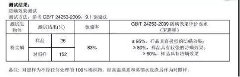 杜邦SORONA玉米纤维棉的防螨测试实验结果