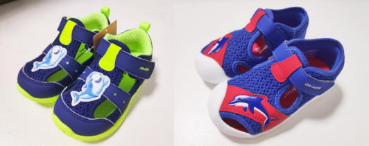 两双凉鞋的鞋底花纹深刻又清晰,有很好的防滑效果,能防止小朋友在运动过程中打滑受到伤害,保证了他们的基本安全。