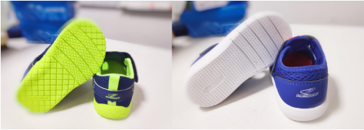 两双鞋子的鞋头都是圆头,鞋头空间足够大,不会在运动时挤压小朋友的小脚,让他们的脚得到充分舒展。而且最重要的一点就是两双鞋的鞋头和鞋后跟都有很好的包裹性,可以保护好小朋友的脚趾和后跟。