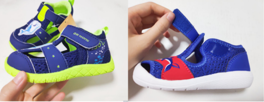两双凉鞋都采用了透气的网布面料,第二双凉鞋的露出面积更多,可以让小朋友在走路时没有闷脚的烦恼,热气散不出去会让娃的足底肌肉松弛,导致足弓平坦,因此鞋子吸汗透气很重要。另外两双鞋子都是粘扣设计,很方便穿脱,小朋友自己也能很快穿上鞋子!