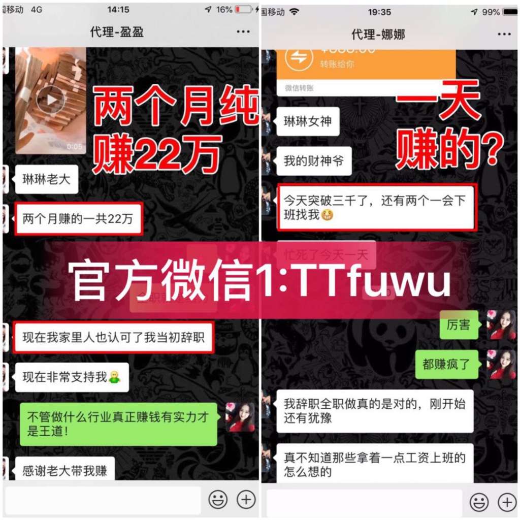 琳琳老大是我微商之路上的恩人,一辈子的恩人,我终于明白为什么她手底下能有那么多人跟着她死心塌地的干,只因为她对每个人都很负责!总是把代理的事情摆在第一位!我真的很佩服!虽然微商之路有点曲折,但是一切都是为了让我遇到这么好的老大-琳琳!现在我做的是全职微优选5!底下好几十个代理也跟着过来一起了!我相信这么好的平台,这么好的趋势,作为一个黑马战队代理,我深深体会到现在做微商的路已经走到尽头了,每个微商都需要人脉,做人脉比做产品好做太多了,只要这个平台推广是有效果的,那么这个平台就能走很远,我相信自古以来人脉就是钱脉这个道理!现在微商几千万,每个微商手里都屯有货,那几千万微商都是我的精准客源,而且微商软件上的微商都很好加,人脉不愁,钱就源源不断!早加入的小伙伴跟着琳琳老大已经买房买车了,我相信我会是下一个买房买车的幸运儿!如果有微商也遇到向我一样的问题可以找我的老大琳琳!她的微信是:TTfuwu重要的事情说三遍