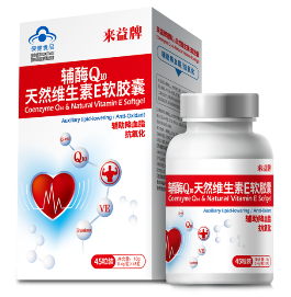 来益牌辅酶Q10天然维生素E软胶囊将两种关键营养素完美结合,真正做到“1+1大于2”,发挥辅酶Q10和天然维生素E的协同护心作用!
