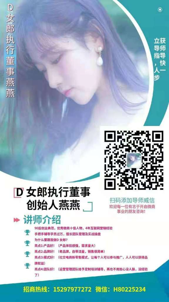 我是D女郎私护+D女郎丰韵官方总代燕燕也是品牌健康导师,有五年美体塑型实战经验,成功帮助2000多名朋友重新找回自信,D女郎专注健康护理,购买正规D女郎私护产品或代理官方D女郎丰胸套就选择官方总代燕燕