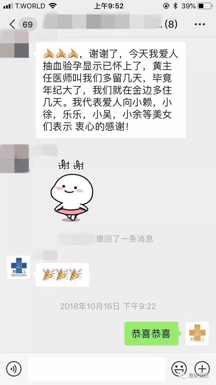 10月9日,W女士在RFG金边医院完成了移植手术,16日HCG值显示成功怀孕。