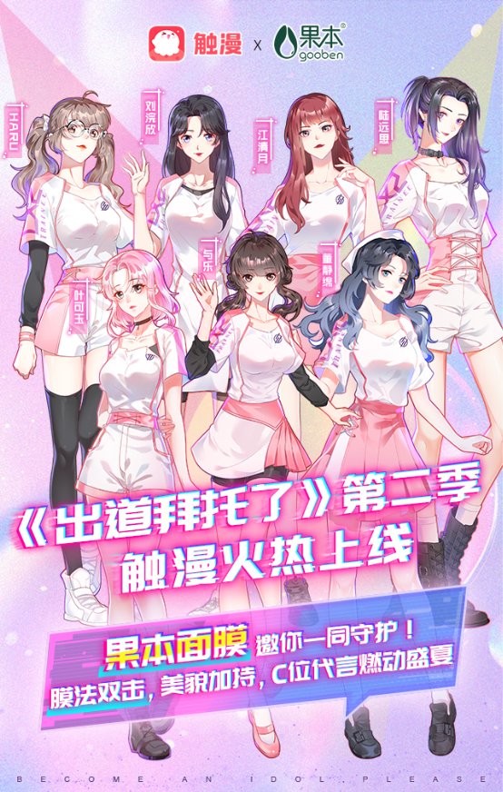 果本品牌素来都是中国化妆品行业内会玩、敢玩的品牌,其娱乐营销方式大胆新颖,吸引了一众年轻消费者的追捧。在当下二次元商业价值渐显的今天,果本品牌迅速抓住时间,与触漫APP展开合作,启用了《出道!拜托了》第二季的二次元偶像代言,开启了娱乐营销的新方式。