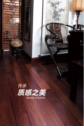 遵循这一理念,朗居地板在打造新中式系列产品时,改变传统地板的调性,升华现代地板的品位,特别选用了特显木种红檀香、花梨、紫檀,以原木尽显致臻品质。易承彬介绍,精琢细雕的新中式地板纹理清晰,保留了木材天然凹凸肌理,展现出细节之美,使悠长的东方文化意境走入心畔。