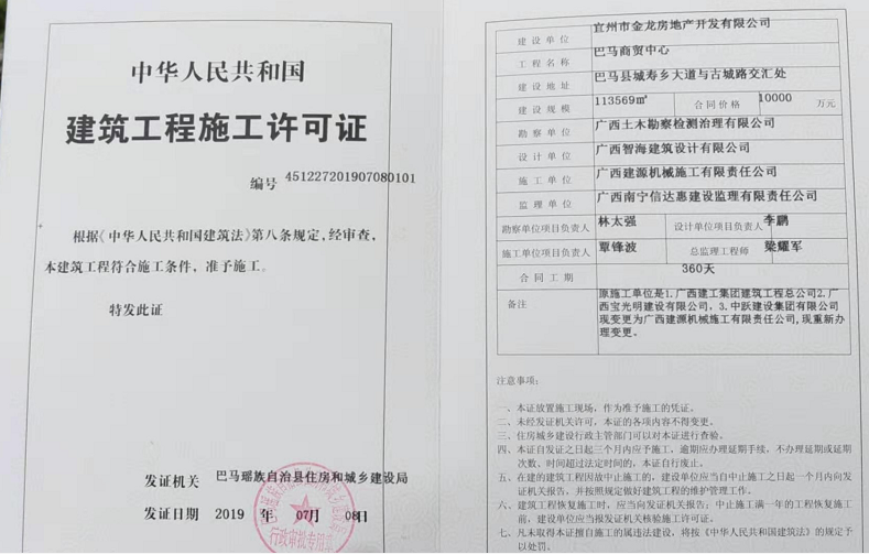 巴马住建部门违规颁发的《建筑工程施工许可证》