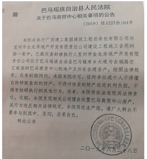 巴马人民法院相关《公告》