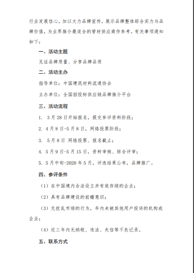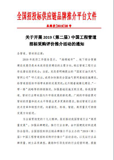 2019年3月,全国招投标供应链品牌推介平台发布《关于开展2019年(第二届)中国工程管道招标采购评价推介活动的通知》,活动主办明确列出:指导单位是中国建筑材料流通协会,主办单位是全国招投标供应链品牌推介平台。业内人士不难看出,中国建筑材料流通协会就是活动的主办方。