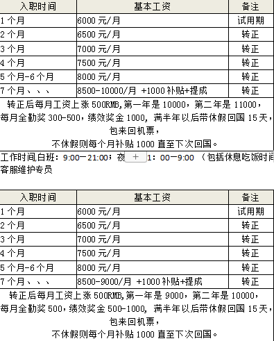 超出任务量则三个月每月奖励1000 工作时间9小时,月休2天