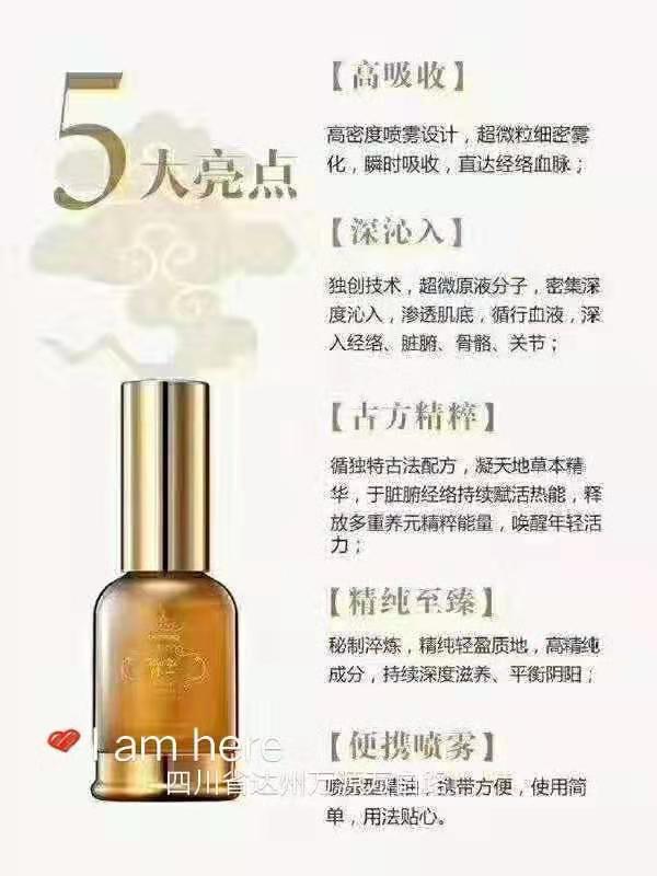 精油运用纳米科技透皮技术,产品特点:1.快速 (按秒,分时,天计算),2.强悍 (市面产品没有可比性,技术领先世界10-15年),3.震撼 (对医学上解决不了的难题都会有所改善和收到意想不到的效果)。