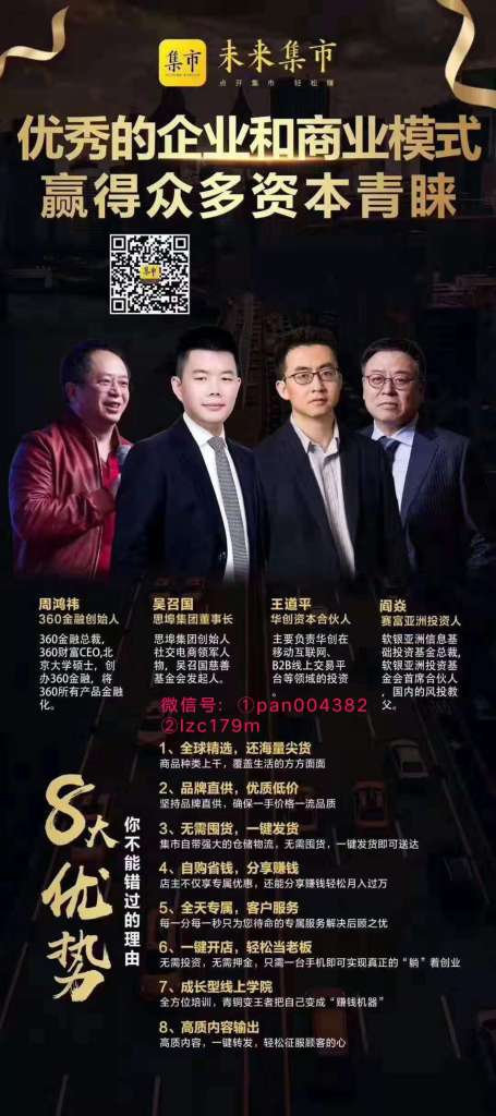 我们是未来集市第一团队,我们在这里等您很久啦!现在招募未来合伙人,万事俱备只等你来!现在是我们的超级红利期轻松开店坐享赚钱,不囤货不发货,自购省钱分享赚钱,官方管家贴心服务无忧开店,购物低至6折最高返利40%海量品牌终身代理权,即刻加入抢占先机获取超级红利