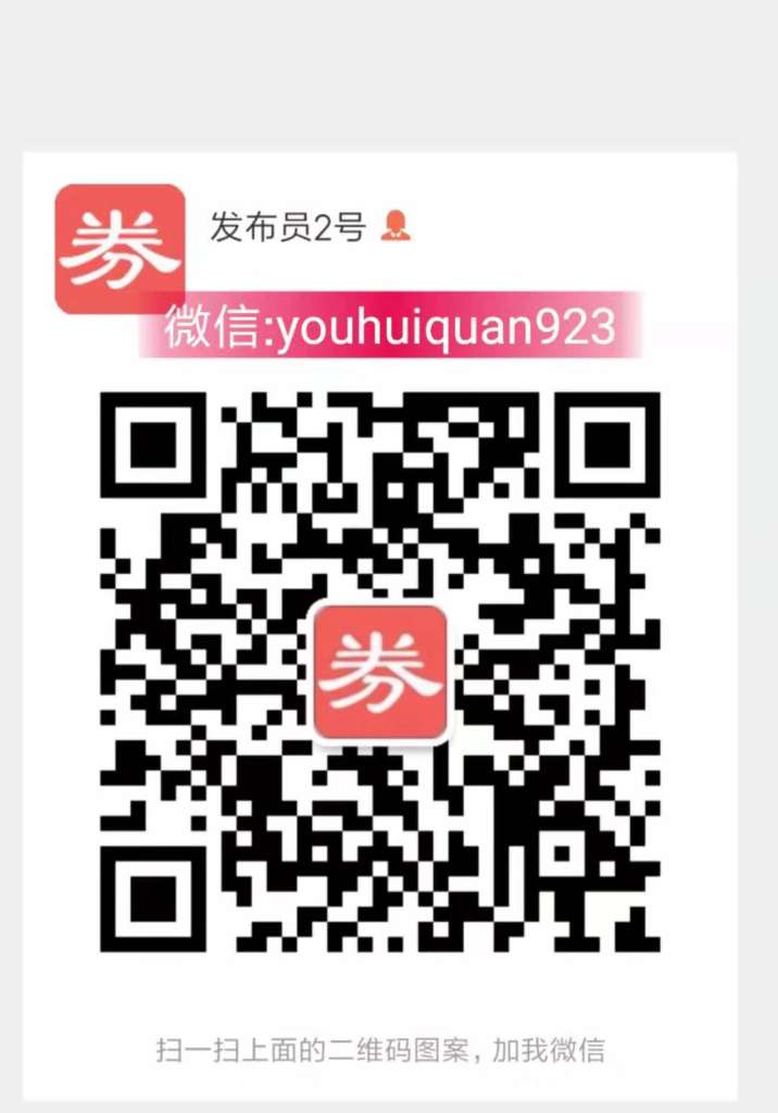 本号提供正规的淘宝特价活动优惠券,群和朋友圈发布每日精选的淘宝天猫优惠券活动。您可以加我微信,手把手教你如何自己搜索或者查找隐藏优惠券的方法,或者由我拉你进微信群,每天发布各类商品各类淘宝天猫优惠劵低价商品,值得注意的是,当您领完优惠券以后要尽快使用哦,因为到期就会作废的,作废就不能享受到优惠了。大家在网购的时候一定要记得先领券再购买,和我一样每年轻松省下万元以上。扫描二维码或者添加微信一起做一个更省钱的自己:youhuiquan923