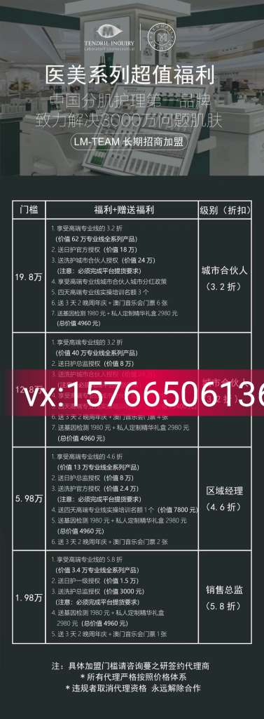 5. 19.8万享受城市合伙人授权(终身享受所在城市10%的分红),赠送蔓之研官方授权,价值16-18万