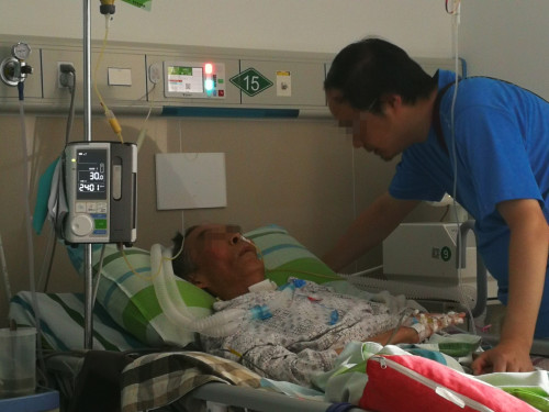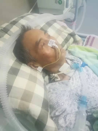刘传元在重症病房以呼吸机维系