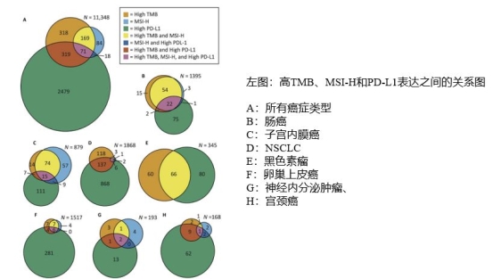 图A:每种颜色代表一个dMMR癌种。