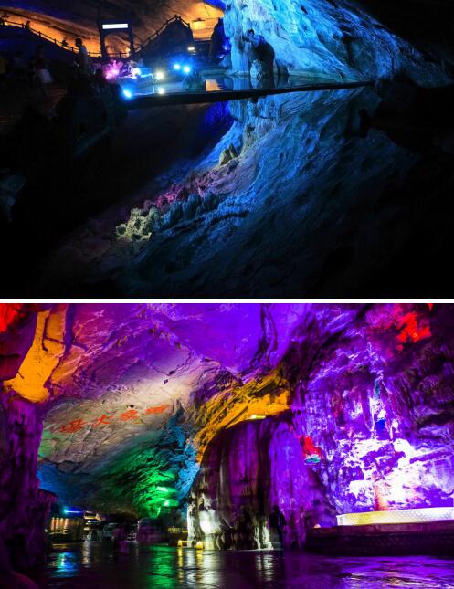 洞壑幽邃,无数的石钟乳、石笋、石幔在五光十色的灯光照耀下,色彩绮丽、千姿百态、玲珑剔透,展示着大自然的鬼斧神工。中洞、上洞、下洞、水洞,洞洞相通,时而狭窄时而宽阔,在此可一览奇妙的地貌奇观,“狮象大场”、“荷花倒影”、“乌龙吐水”……让你目不暇接。溶洞温度常年保持在20℃左右,冬暖夏凉,中秋佳节,不妨和家人一起,来一场“异世”探险之旅。