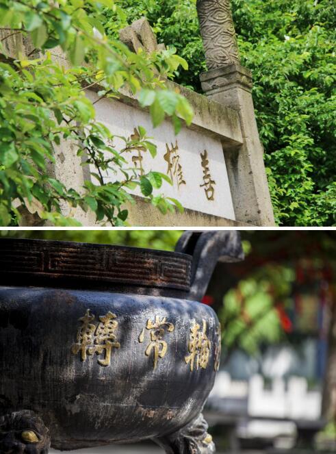 善卷洞内,除了善权寺之外,还有一处禅意满满之地——圆通阁,位于螺岩山顶,红瓦黄墙,每日禅香四溢、钟鸣鼎盛。圆通阁殿前,有一名“吉祥钟”,乃“吉祥如意”寓意,中秋佳节不妨来此,祈求“吉祥平安”。