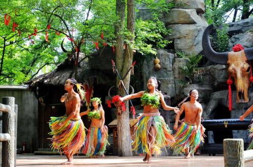 大胆复古的造型,欢快热烈的舞蹈,野人谷里的“野人们”正在用自己的方式热情地迎接着游客的到来,来此一游,加入“野人们”的表演,和家人一起当一回“野人”,放松身心,自在畅玩!