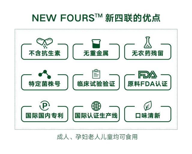 “NEW FOURS新四联抗幽”口服系列属于天然食疗,采用天然食品级别高浓缩萃取原料,原料采撷来自全球的珍稀天然植物精粹及人体有益特定共生菌株高效新四联配伍而成。