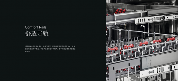AEG ComfortLift 全嵌式洗碗机以人的需求为设计出发点,搭载舒适升降技术,可自动把下层碗架升降到舒适的操作高度,减少弯腰带来的不适感,为消费者带来家电体验的新高度。同时搭载的Satellite Spray Arm卫星喷淋臂,即使满载餐具也可让水流抵达每一个角落。