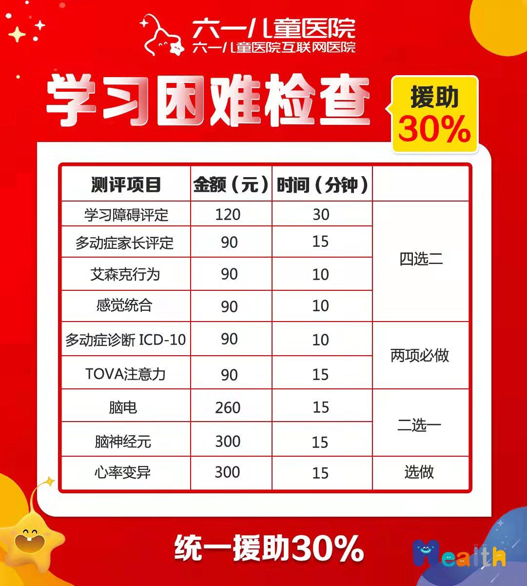 一、学习困难检查援助30%: