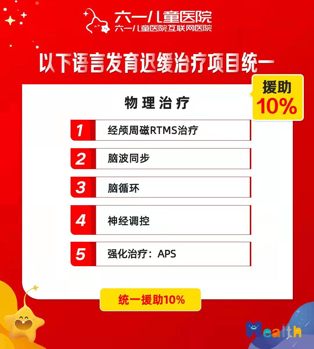 三、以下语言发育迟缓治疗项目统一援助10%: