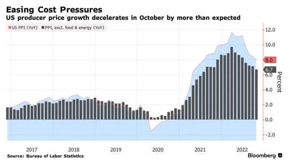 通胀消退新迹象!美国10月PPI降幅超过CPI