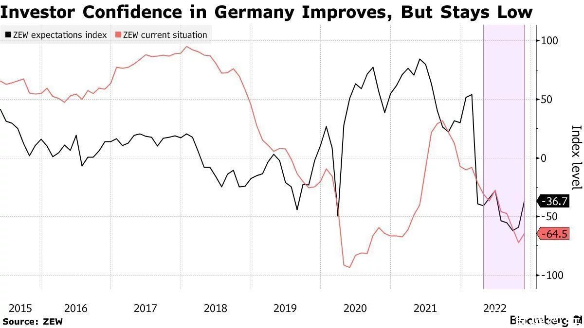智通财经APP获悉,投资者对德国经济前景的信心指数反弹至6月以来的最高水平,创纪录的通胀可能正在见顶。欧洲经济研究中心(ZEW)的预期指数从上月的-59.2攀升至-36.7,好于经济学家预期,但仍低于对经济衰退预期的长期平均水平。