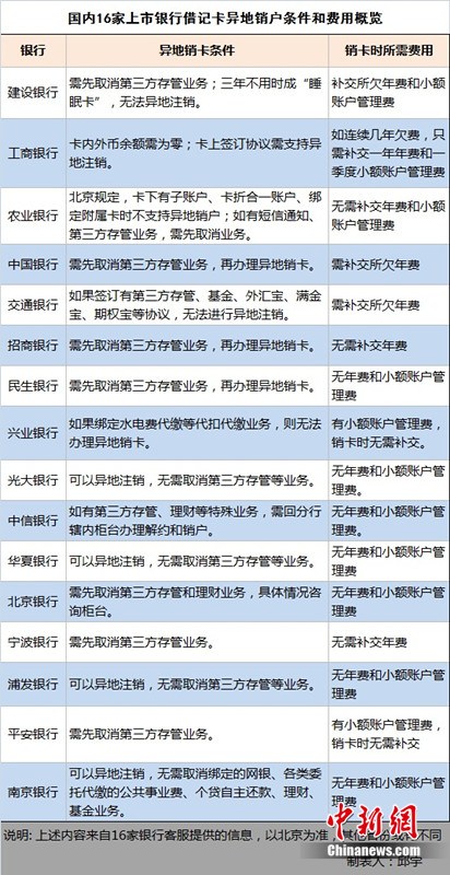 国内16家上市银行借记卡异地注销条件和费用概览。需要补交年费与账户管理费吗?