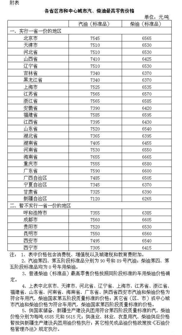 中新网11月30日电 据发改委网站消息,根据近期国际市场油价变化情况,按照现行成品油价格形成机制,自2016年11月30日24时起,国内汽、柴油价格(标准品,下同)每吨分别提高175元和170元。