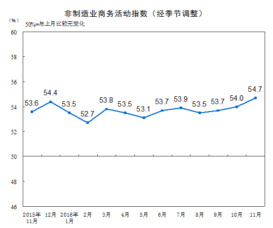 11月中国非制造业PMI为54.7% 系2014年7月以来高点