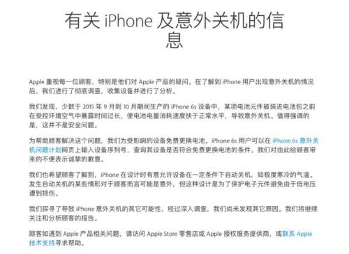 苹果6系列手机异常关机 官方回复尚在查找原因