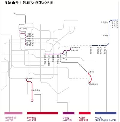 新京报讯 (记者赵实)12月9日,北京市重大项目建设指挥部办公室主持召开2016年轨道交通线路开工动员大会,新京报记者从会上获悉,北京市轨道交通3号线一期、八通线南延、昌平线南延一期、平谷线和新机场线一期,共5条线路即将开工,总长达126公里,北京轨道交通再次迎来新的建设高峰。