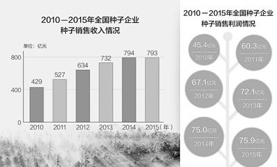 目前,全国持证种子企业4300家,比2011年减少了一半。10家信用明星企业净资产、科研投入分别是5年前的2.3倍和2.6倍。植物新品种保护名录新增经济园艺等作物种属45个,申请量1.7万件。农作物生产种子形势总体稳定,明年农业生产用种供应保障充足。农业部副部长余欣荣表示,2013—2015年3年时间,我国种业企业注册资本1亿元以上的增加了28%,达到146家。同时,种业企业经营能力显著增强,种子销售收入和种子销售利润分别较2010年增长85%、67%。