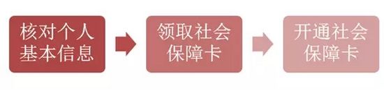第三步:开通社会保障卡。参保人领取社会保障卡后,本人须持社会保障卡、有效身份证件原件到对应银行窗口开通社会保障卡,未成年人需由监护人持社会保障卡、监护人有效身份证件原件、户口薄原件办理。