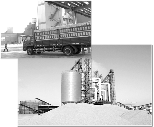 下图 东北玉米水分较大,加工企业收购潮粮后,进行烘干储存。图为吉林天裕生物工程有限公司的烘干塔旁边堆放着需要烘干的玉米。 本报记者 刘 慧摄