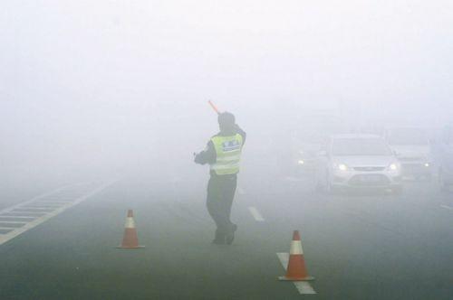 雾霾中的交警
