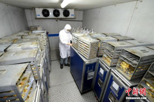 资料图:预计距离飞机快降落时,工作人员开始将食物装入送餐车,进入停机坪等待舱门打开,将飞机餐送入机舱中。图为还没有配送出去的食物都放在冷藏室。 王东明 摄机上延误超3个小时 航企可安排旅客下飞机等待