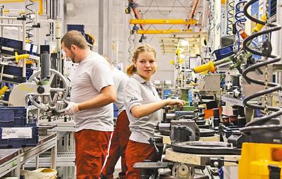 2016年中国企业在德国共进行了45次并购,项目数量和金额都创下历史纪录。图为去年7月,德方员工在中企投资的模块化液压系统供应商林德液压的现代化厂房内工作。本报记者 冯雪珺摄