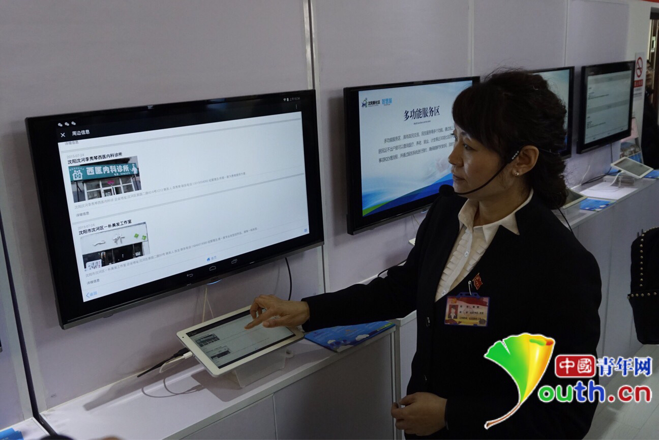 沈阳市沈河区清泉社区内,工作人员向记者介绍智慧屋社区生活服务平台。中国青年网记者 李正穹 摄