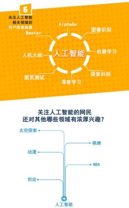 此外,关注人工智能的网民还对“创业”、“动漫”、“棋牌”、“NBA”等频道有着浓厚的兴趣。看来,在走进科学的同时,人们对工作和娱乐生活的追求也同样重视。
