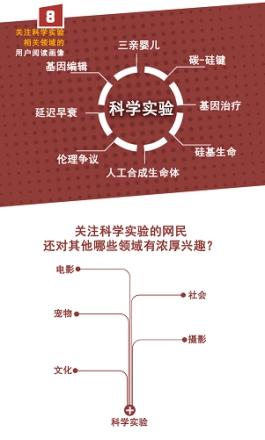 2016年“三亲婴儿”诞生引发网民伦理大讨论,从“人工合成生命体”、“基因编辑”到“延迟早衰”、“基因治疗”,关注科学实验频道用户的标签都有着很强的关联性。或许生命科学本就是一个感性与理性交融的命题,订阅此频道的人们同时也关注着“宠物”、“文化”、“社会”等多项关键词。