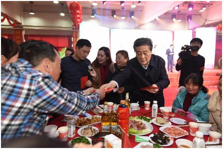 员工们听说大家长来了,忙起身鼓掌欢迎。和蔼的大家长则忙着挥手示意大家坐下,致辞、敬酒、发红包,然后边吃年夜饭边欣赏艺术团精心准备的演出......