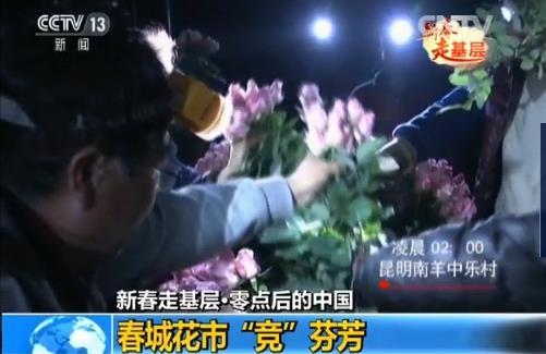 凌晨两点,在昆明南羊中乐村,花农胡兴安正在打包刚刚采摘的鲜花,为了避免阳光的照射,花农们采收鲜花常常从凌晨开始。春节前,各地鲜花的需求量非常大,花农们也进入了一年最忙碌的时候。但胡兴安说他忙得快乐,因为手中的鲜花已经迈出国门,走向了世界。