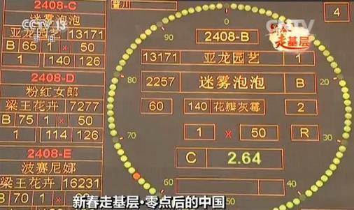 拍卖交易正式开始了,陈飞他们快速地播报着鲜花的批次和信息,通过耳机传到600个购买商的耳中。一旦拍卖师给出起拍报价,六个大钟上的光标就立刻启动,数字从起拍价急速下落,每一个购买商要在瞬间作出决定,在自己的期待价位上按下抢拍键。结果立见分晓,平均每4秒钟就完成了一次鲜花交易。