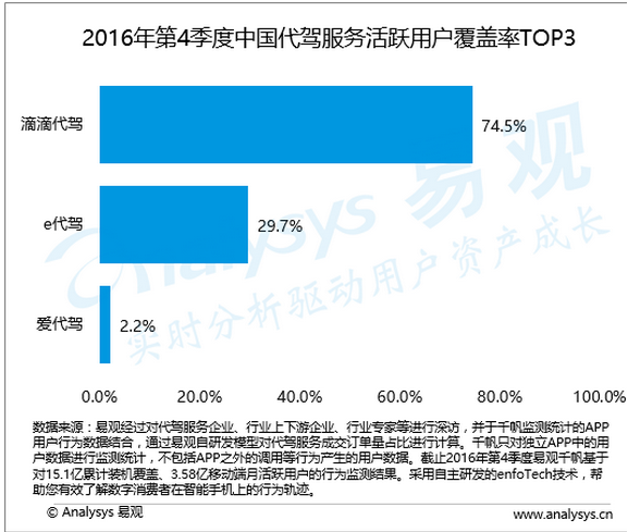 易观2016年Q4报告:滴滴代驾市场份额超7成
