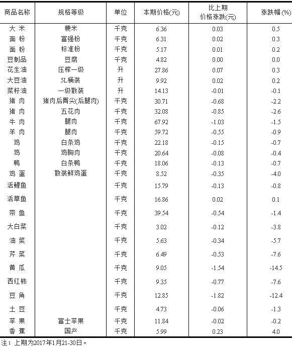 50城主要食品均价:肉禽蛋鱼蔬菜类回落 黄瓜领跌14.5%