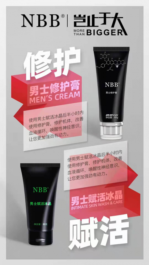 NBB是一款全新产品——NBB增大膏,NBB男人的“安全卫士”NBB男士修护膏源于印尼,珍贵草本、印尼配方~开启18cm俱乐部。NBB是一款配方和技术支持均来自于印尼的专门针对男性****,尺寸短小的男性产品,NBB主要功效是能够将所含有的超强小分子快速渗透作用到**内部,促进**内部韧带生长的同时还能够强化PC肌,**韧带每生长一公分**渤起后也相应增长一公分,韧带生长的空间根据个人体质和吸收情况而定,能增长2-5公分不等。